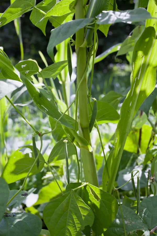 For example, corn provides a natural trellis for climbing legumes like peas and beans. You can also plant squash, a Cucurbit, at the base of the corn. The squash plants help suppress weeds and serve as a living mulch.