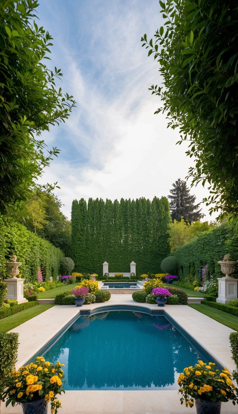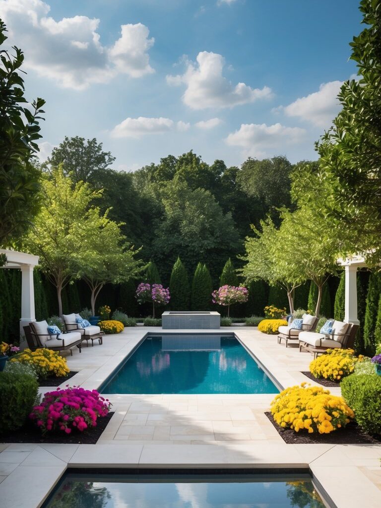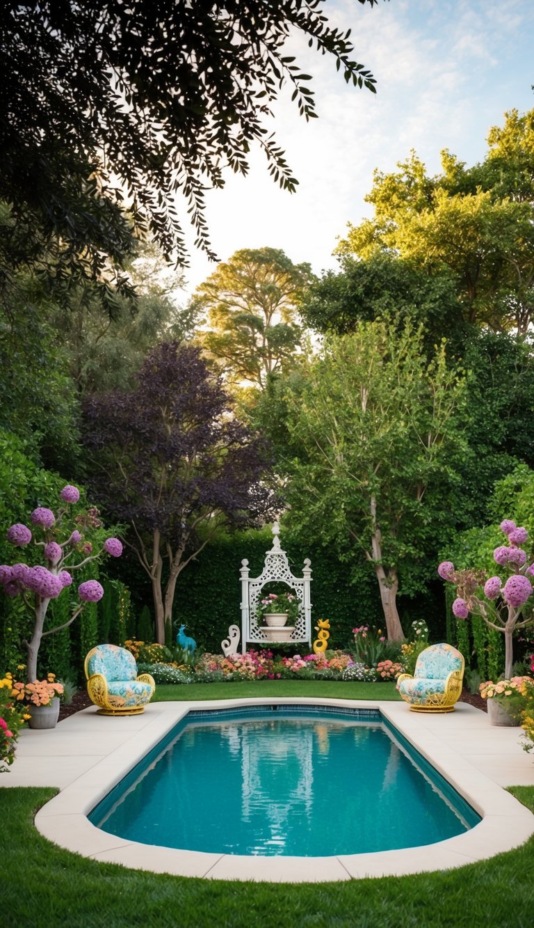 Picture a pool area completely surrounded by tall trees and soft, lush greenery. You can create a magical woodland atmosphere that feels like a secret, hidden retreat.