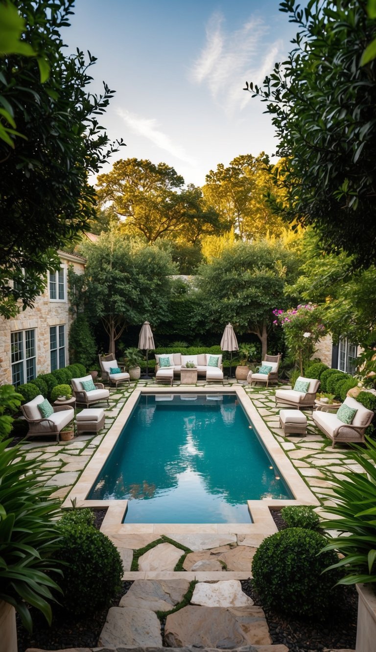 Designing a backyard pool area with rustic charm is all about celebrating natural materials. Imagine warm, inviting stone pathways that guide you toward the water’s edge.