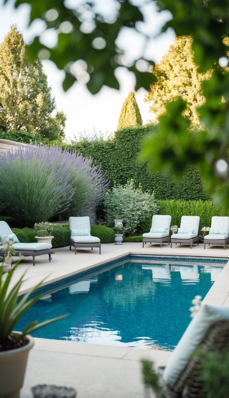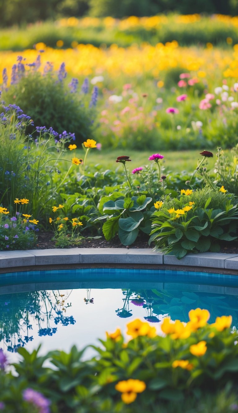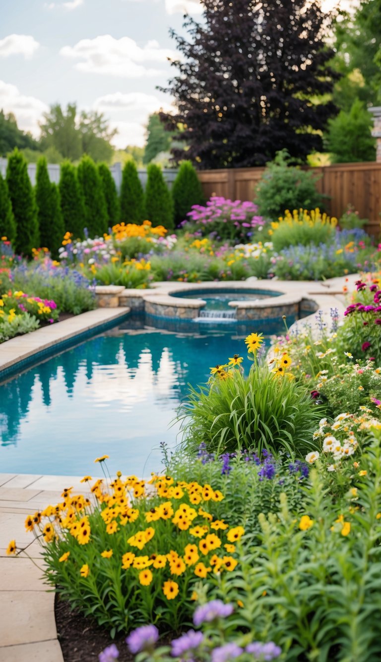 Integrate soft grasses that gently sway in the breeze. This adds both texture and a sense of movement around your pool area. Grouping your plants into natural-looking clusters will make the meadow feel more lush and inviting.