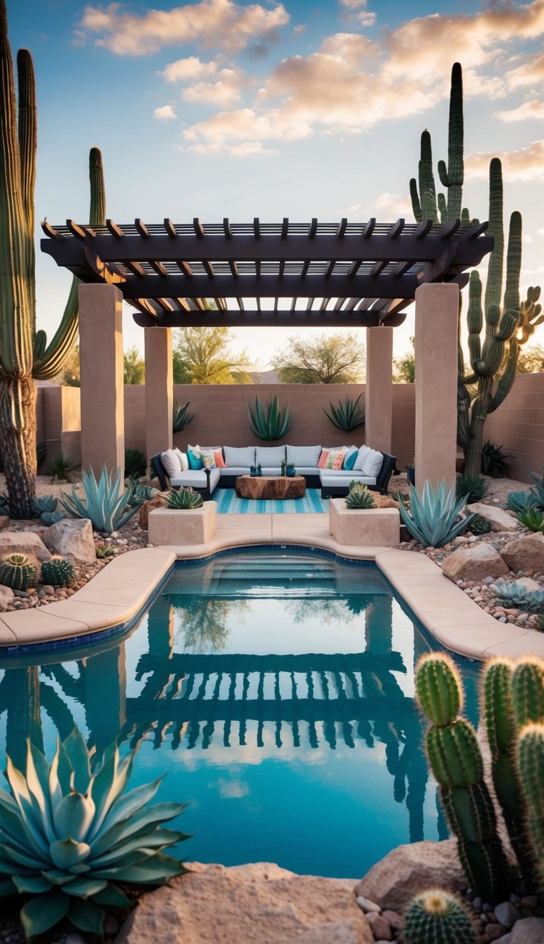 Creating a desert sanctuary around your pool can turn your backyard into a stunning and relaxing oasis. Use native plants to introduce color and life without requiring significant upkeep. Succulents and various types of cacti are excellent choices for this theme.