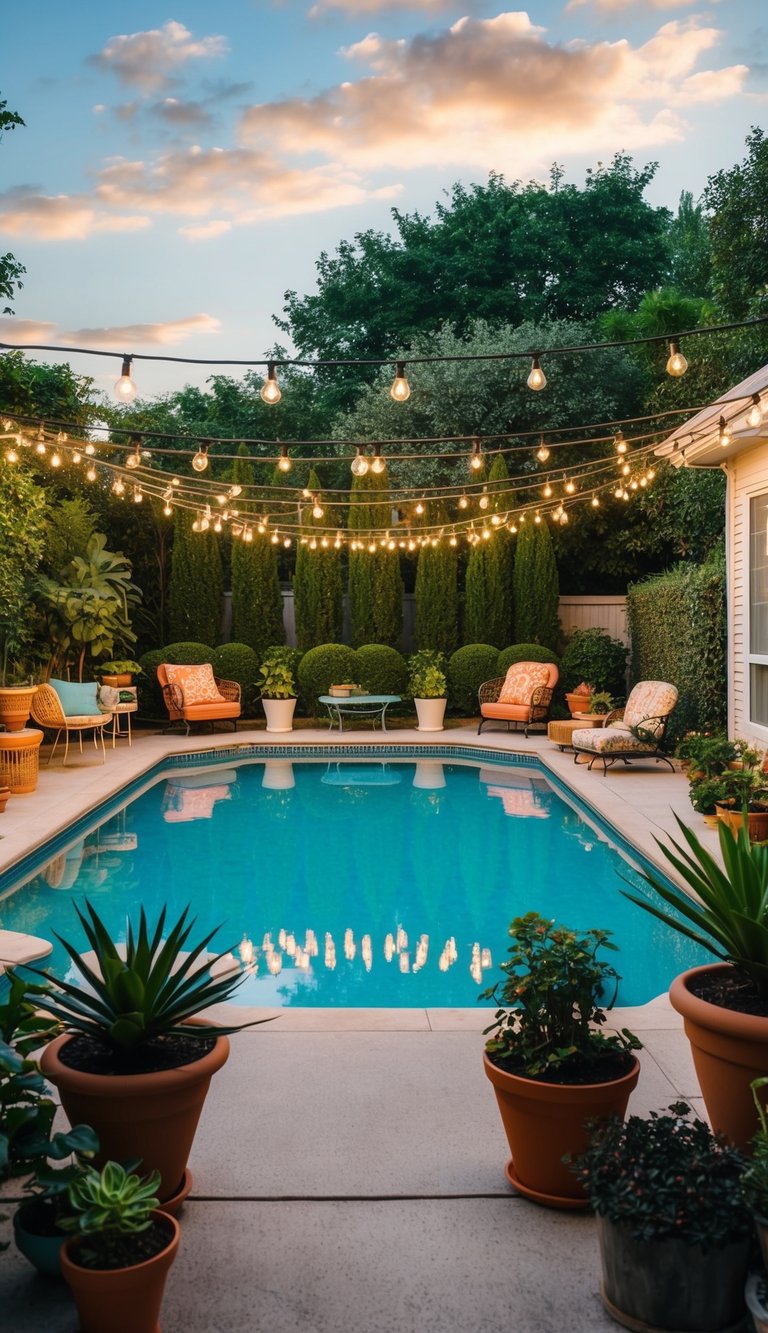 Charming illumination for evening swims can be provided by string lights and vintage-style lanterns. They cast a warm, inviting glow that perfectly enhances the nostalgic feel.