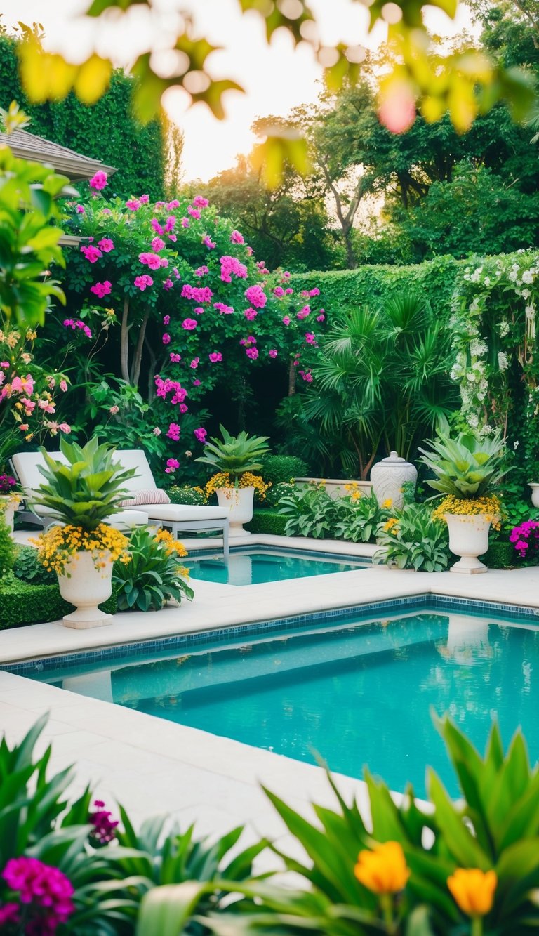 Imagine lounging by your pool, completely surrounded by fragrant blooms and leafy greens.