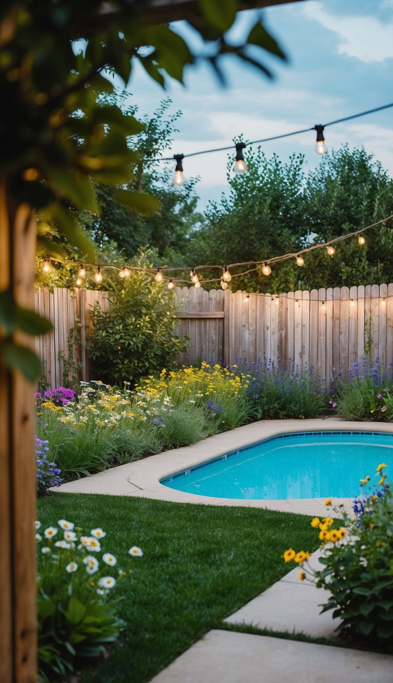 Wildflower-lined pathways can guide you toward the pool. This kind of setup not only looks fantastic but also creates a peaceful atmosphere for lounging. You will love the way the colors explode in your backyard.