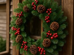 Poinsettias are known as the “Christmas plant,” so having blossomed poinsettias will work beautifully outdoors. You could hang a few of them on the entryway or even have them as a garland on your door.