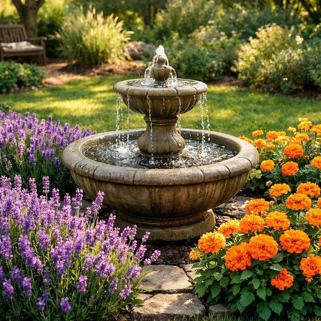1. Create a sensory oasis with lavender, marigolds, and a small water fountain for a backyard that smells and sounds like a dream