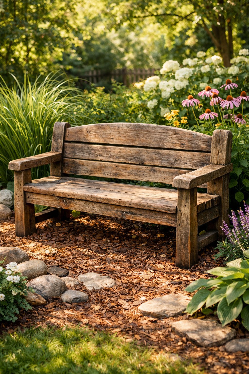 14. Build a garden bench out of reclaimed wood—it’s a seat with character and stories embedded in every grain