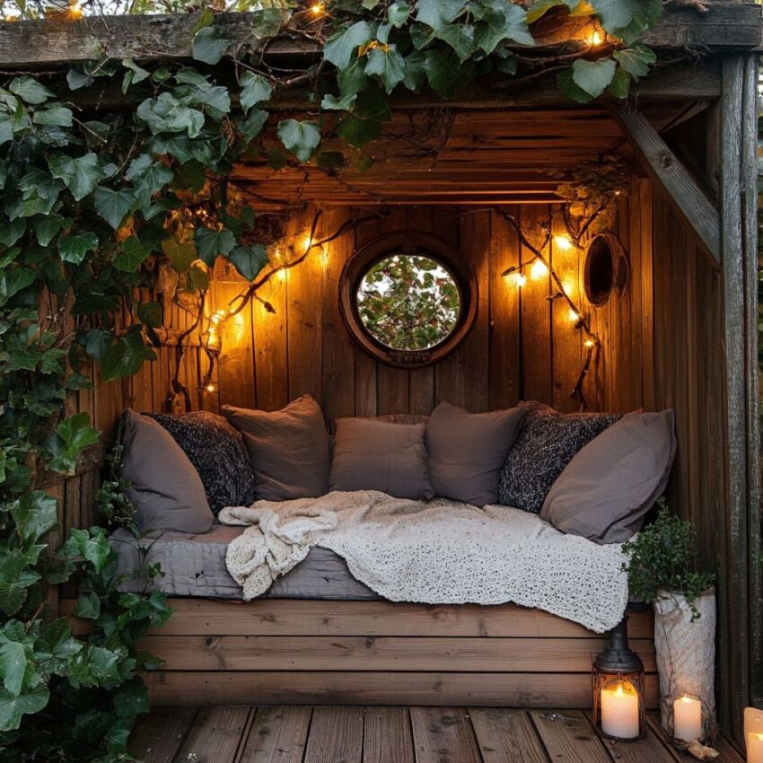 It’s time to decorate. Add plush cushions, cozy throw blankets, and a durable outdoor rug to make the nook incredibly inviting and stylish. You can incorporate potted plants, hanging decorations, or even some artwork to show off your personality and help the space blend beautifully with the rest of your yard.