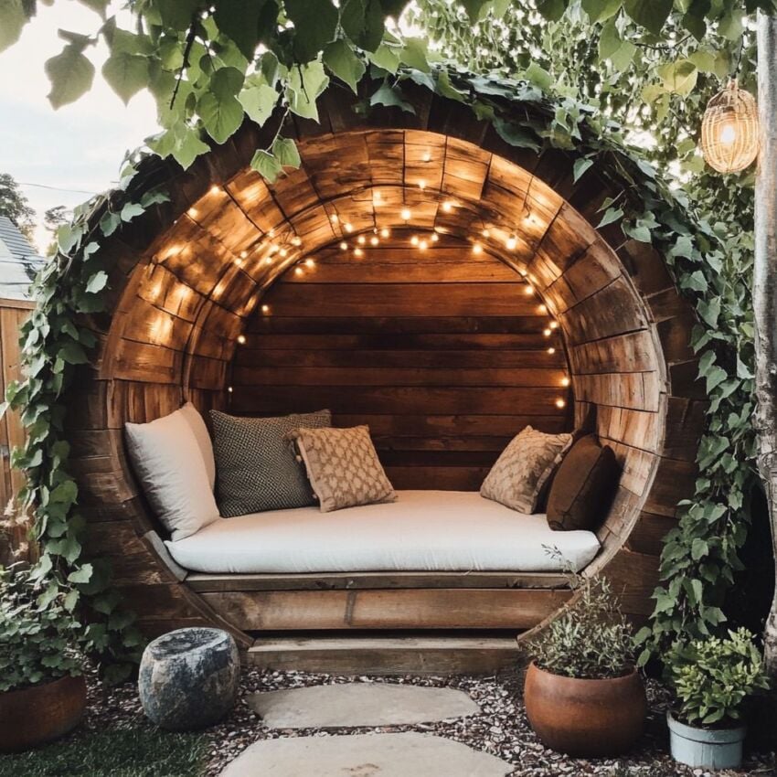 Why not think outside the box with a unique shape for your nook? You could design your retreat as a dome, a hexagon, or even a hideaway inspired by a treehouse. A distinctive form adds architectural interest and immediately makes your reading nook a standout feature in your outdoor living area.