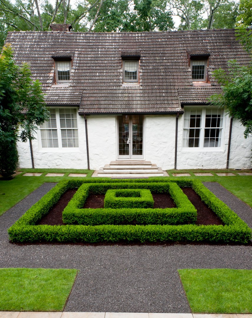 You can bring detail to your front lawn or garden by breaking it into a pattern. It looks contemporary and very unique. Zeterre Landscape Architecture did exactly that, creating a stark contrast between a white paver material and the juicy green grass.