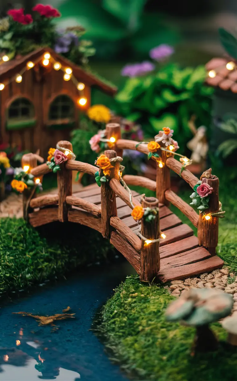 You can embellish the bridge with tiny plants or flowers. Adding fairy lights can make it twinkle beautifully after dark. Whether you choose a painted or natural finish, it will boost the bridge’s appeal.