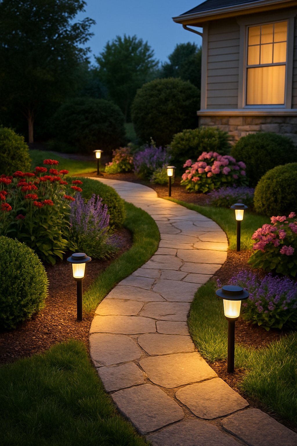 Solar lights are a low-maintenance option, and you can easily move them around if you decide to change your landscape design. Plus, they are an energy-saving solution.