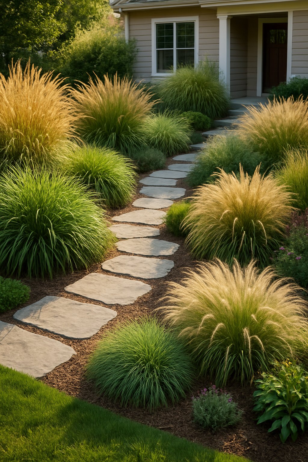 Ornamental grasses introduce a sense of movement and rich texture to your front yard. They are available in a wide variety of heights, colors, and shapes, which helps make your garden feel more dynamic and alive.