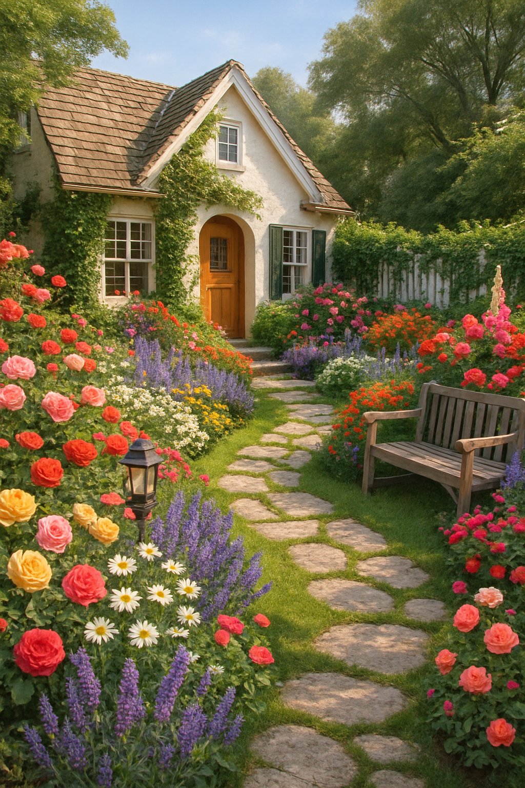 If you want to enhance the classic cottage feel, consider adding a picket fence or a few small statues. These minor details can give your yard a storybook quality without requiring much effort.