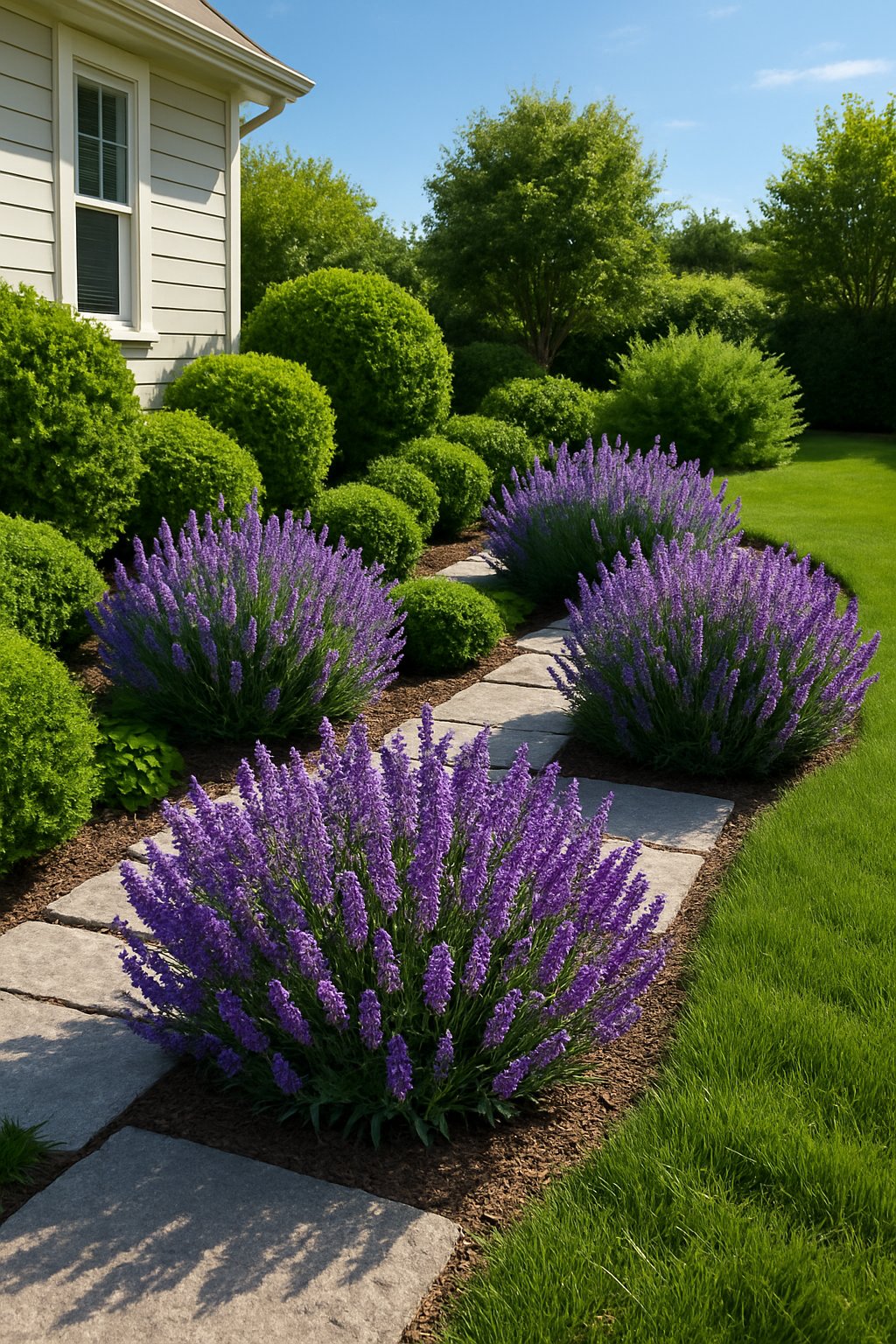 If you’re aiming for a relaxed and colorful front yard, a cottage-style garden is an excellent choice. Combine flowers such as daisies, foxgloves, and lavender to achieve that characteristic wild and natural appearance.