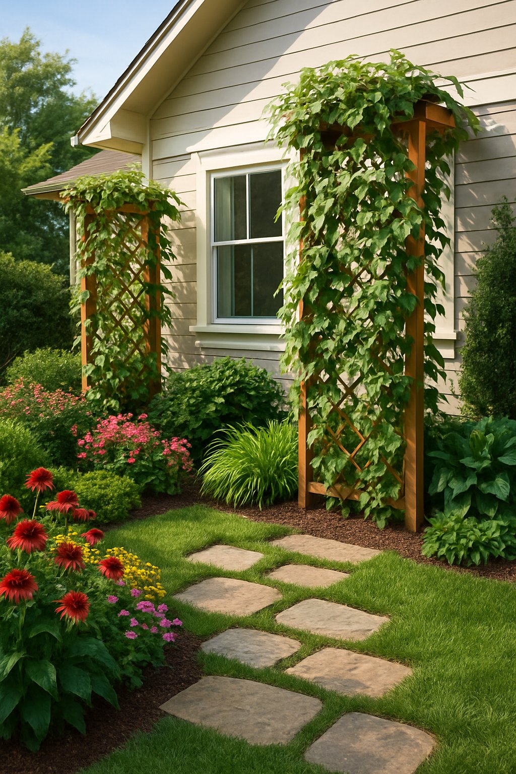 By incorporating climbing vines on trellises, you can instantly add height and a touch of drama to your front yard.