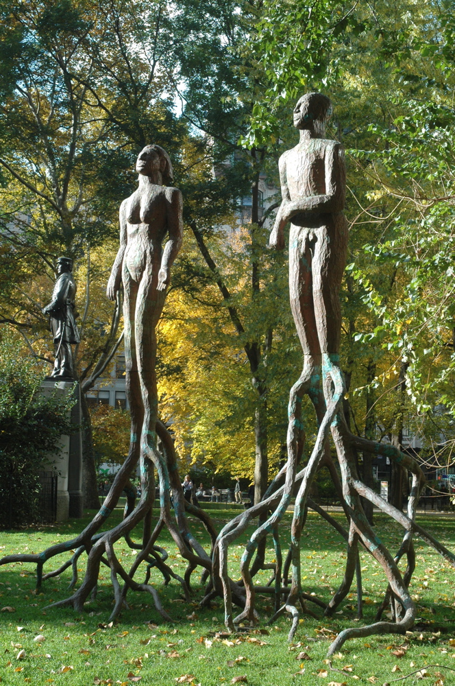 These are Alison Saar’s art garden sculptures at Madison Square Park. They appear to be putting down roots. Source
