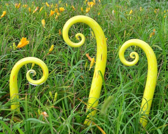 This Murano glass garden sculpture is playfully named Fiddlesticks. Source