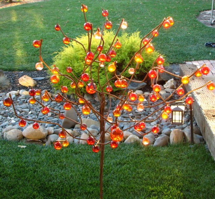 A glass ball tree is a surprisingly straightforward DIY project. Source