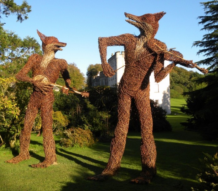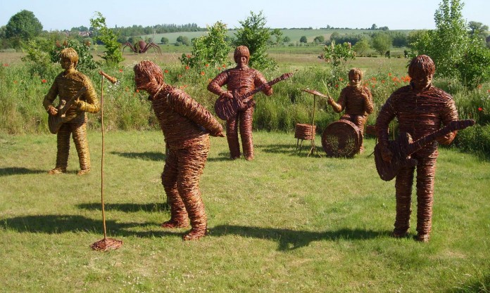 These willow art garden sculptures look like a lively band. Source