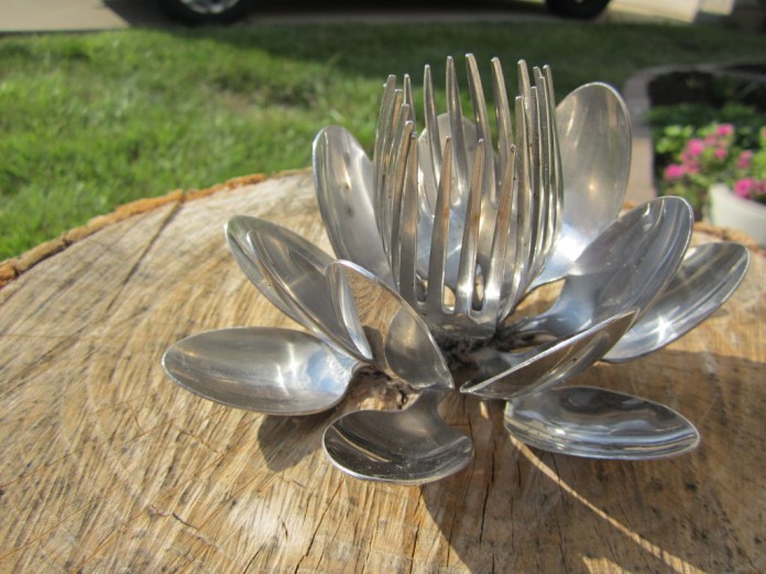 Cutlery flower sculptures are both unusual and very cool. This particular one resembles a water lily. Source