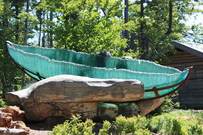 This incredible work is a 15-foot, five-ton glass boat located in the Bavarian forest. Source