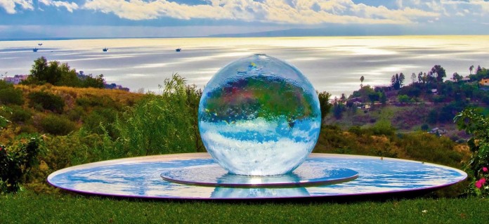 From Nustone, this piece is a dynamic combination of a water feature and a glass sculpture. Source