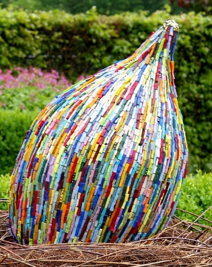 This mosaic glass garden art comes from The Washington Glass School. Source