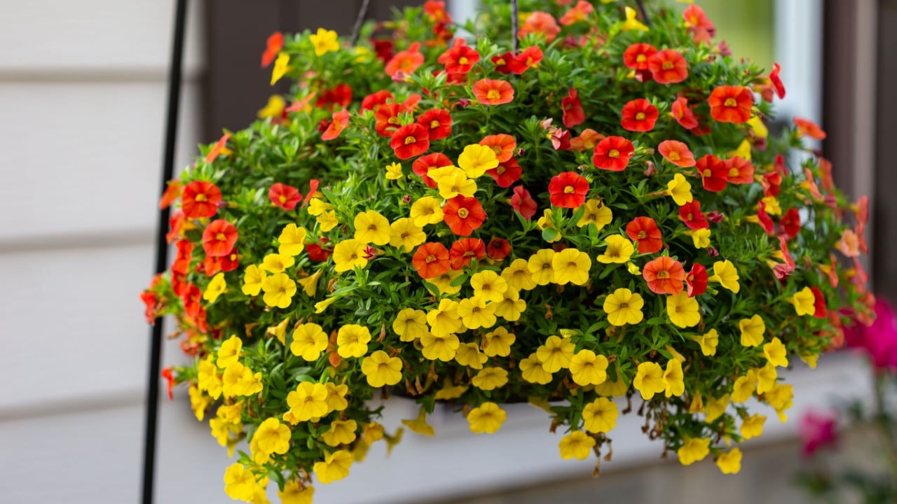 You can find Calibrachoa in a rainbow of colors, from soft pink and purple to violet, blue, and even a unique brownish orange. It is an excellent choice for adding a splash of accent color to your hanging arrangements.