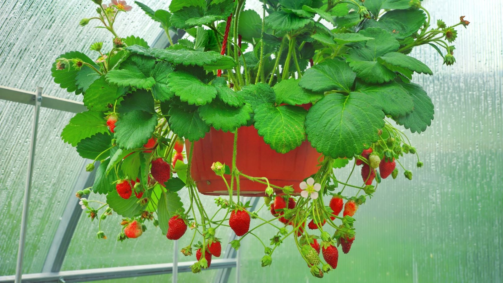 This type of tomato is also easy to grow from seed yourself. Just start the seeds on a sunny windowsill or in a seed propagator around February. If you’re interested in growing strawberries in containers, you can plant a few runners in your basket or simply purchase young plants from a nursery. Strawberries provide a splash of early color and are safely tucked away from the slugs and snails that often bother them on the ground.