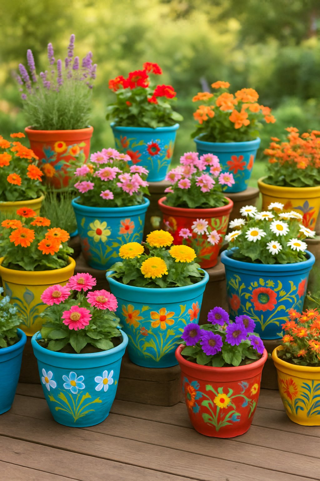 You can instantly liven up your outdoor decor with painted ceramic pots. Feel free to select colors and create patterns that reflect your personal style. Painting pots is a wonderful way to customize them to complement your garden or patio’s color scheme.