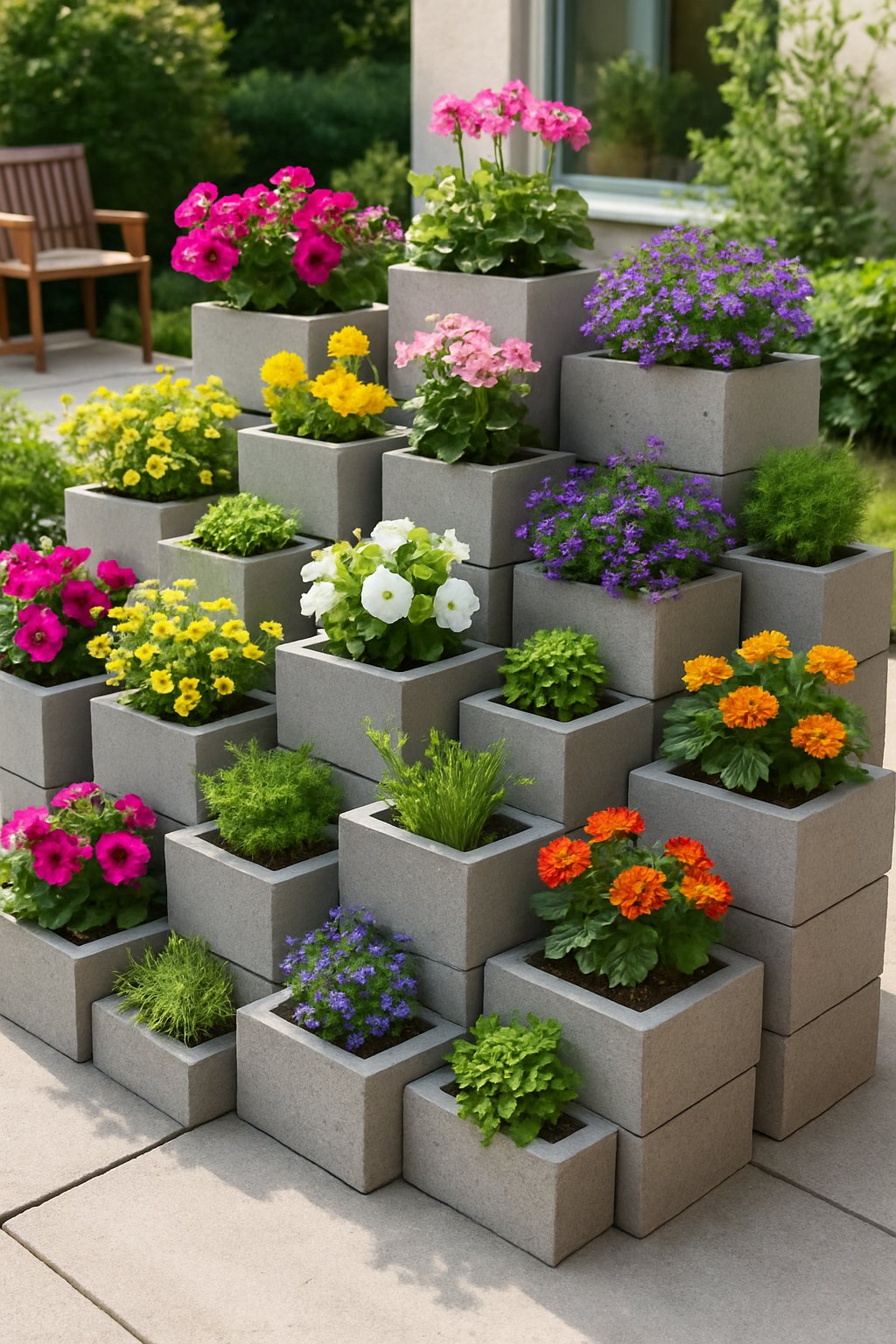 Creating planters from stacked concrete blocks is a straightforward DIY project. Simply arrange the blocks in your desired shape and fill the openings with soil and your favorite flowers.