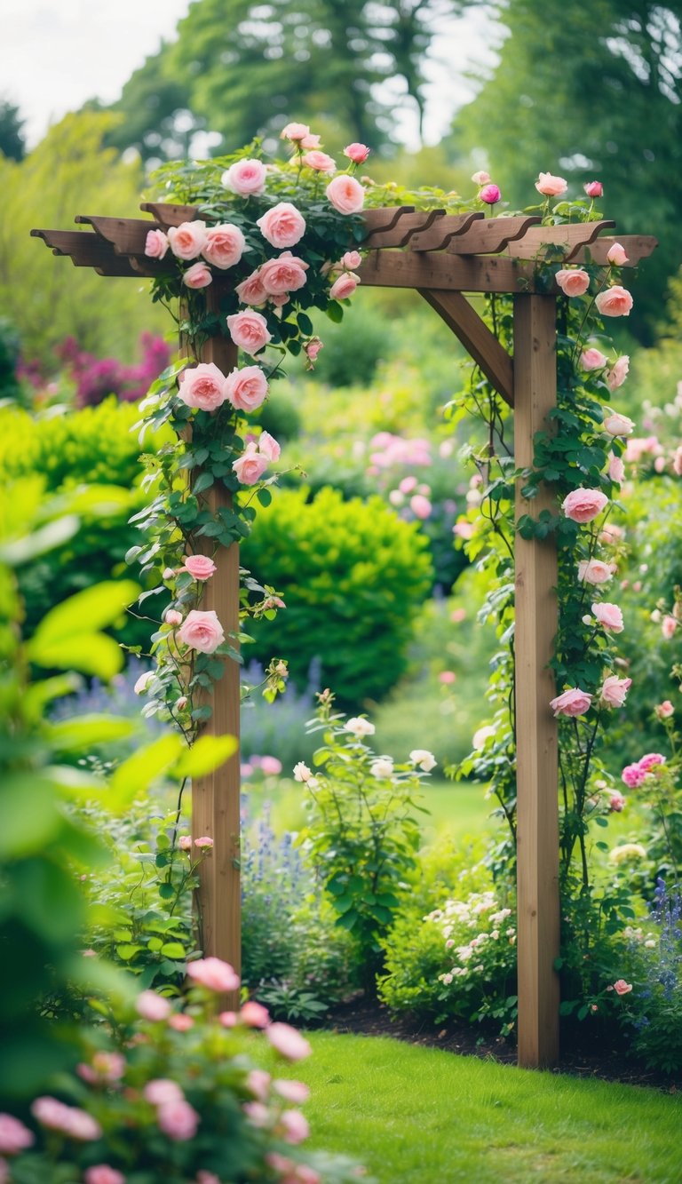 6. Incorporate a wooden arbor with climbing roses