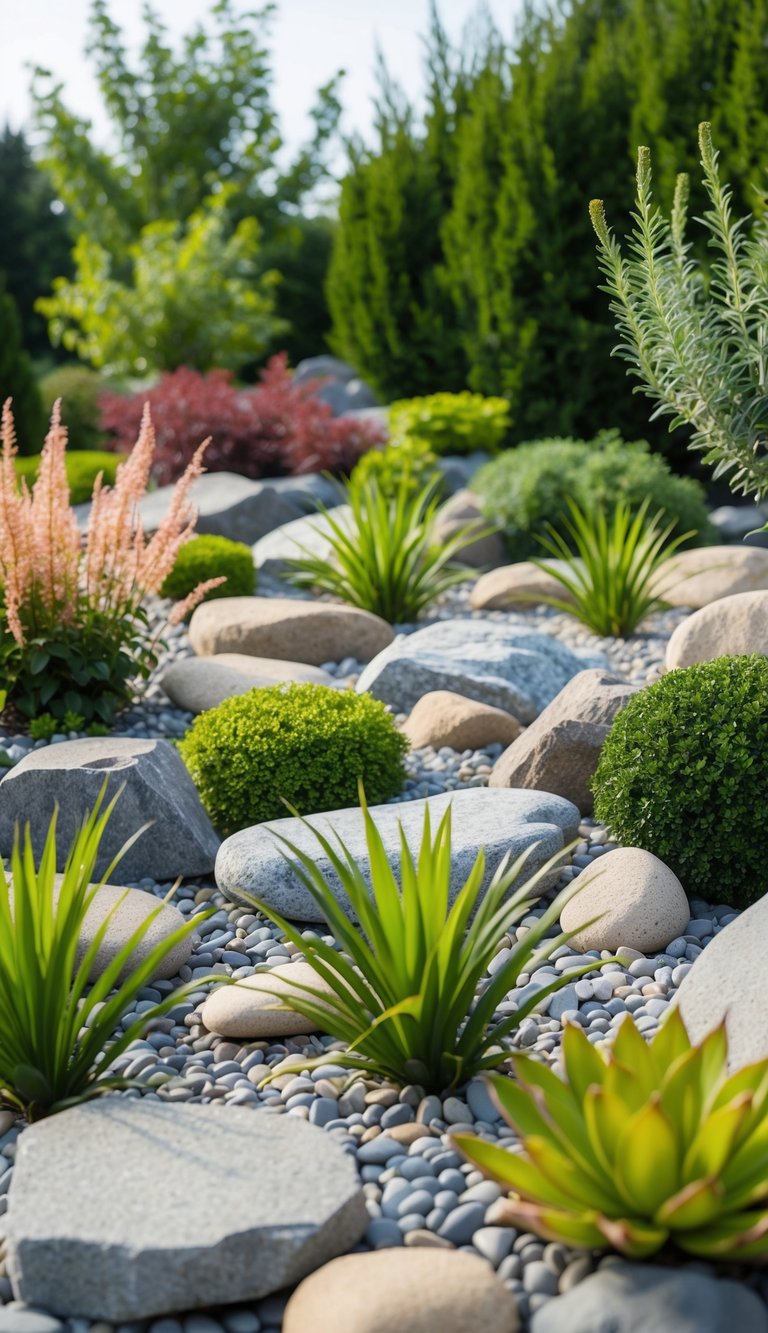 Consider including low-maintenance plants that are known to thrive in rocky conditions. Dwarf conifers are an excellent option, especially for smaller gardens.