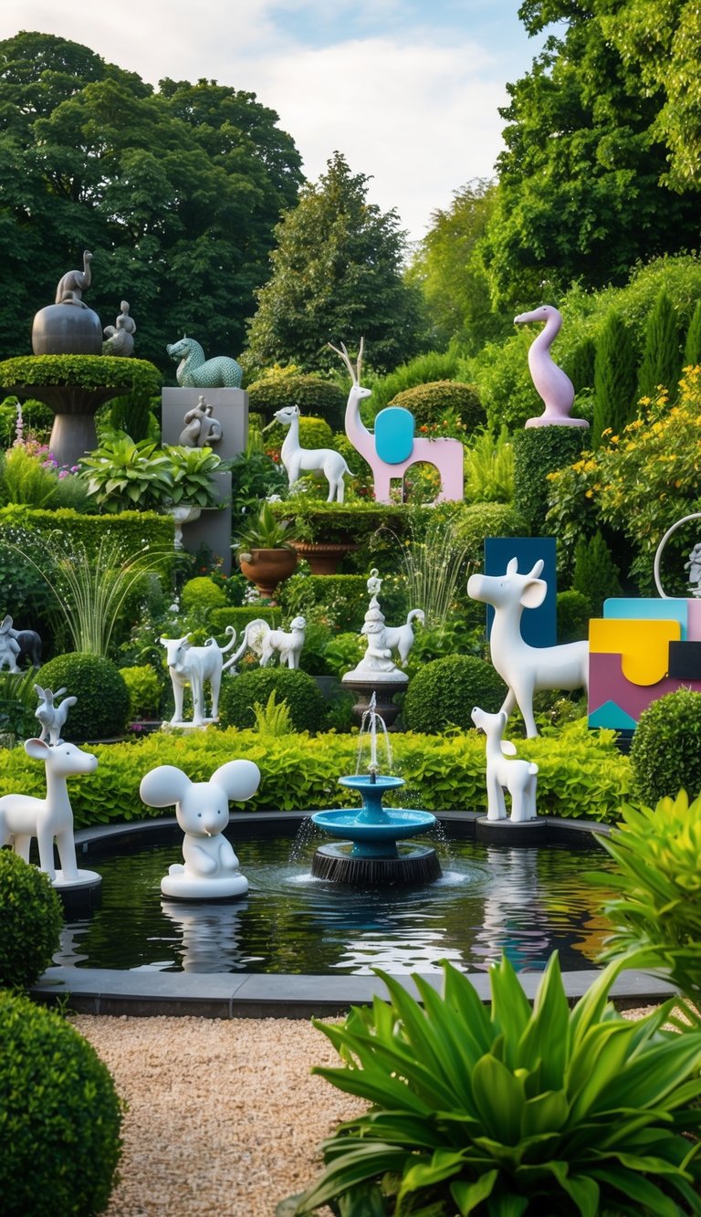 Try placing sculptures among your plants for a more integrated, natural look. This approach helps blend the artwork seamlessly with the garden’s inherent beauty.