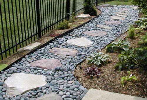 Nearly every landscape design needs to account for drainage. So why not make your drainage ditches beautiful with river stones? It is a natural fit, since water is what created them in the first place.