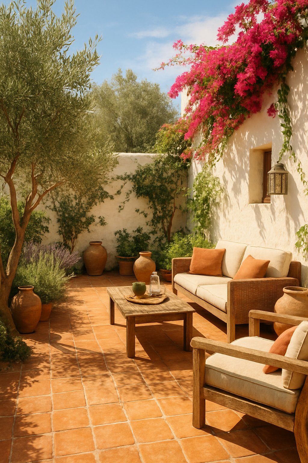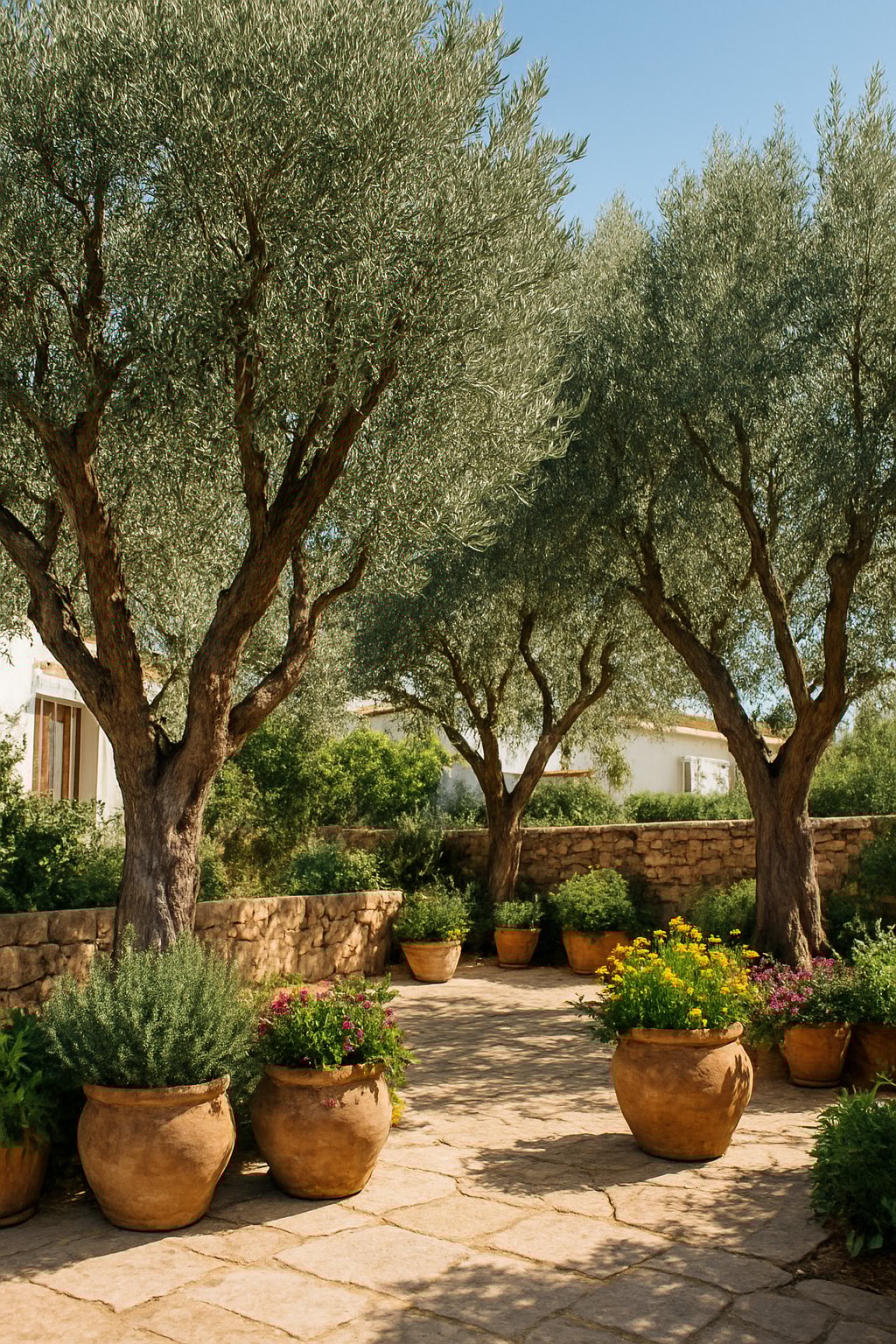 For an even more authentic look, pair them with stone pathways or more terracotta pots. Add some simple wood or iron furniture, and your Mediterranean hideaway is nearly complete.