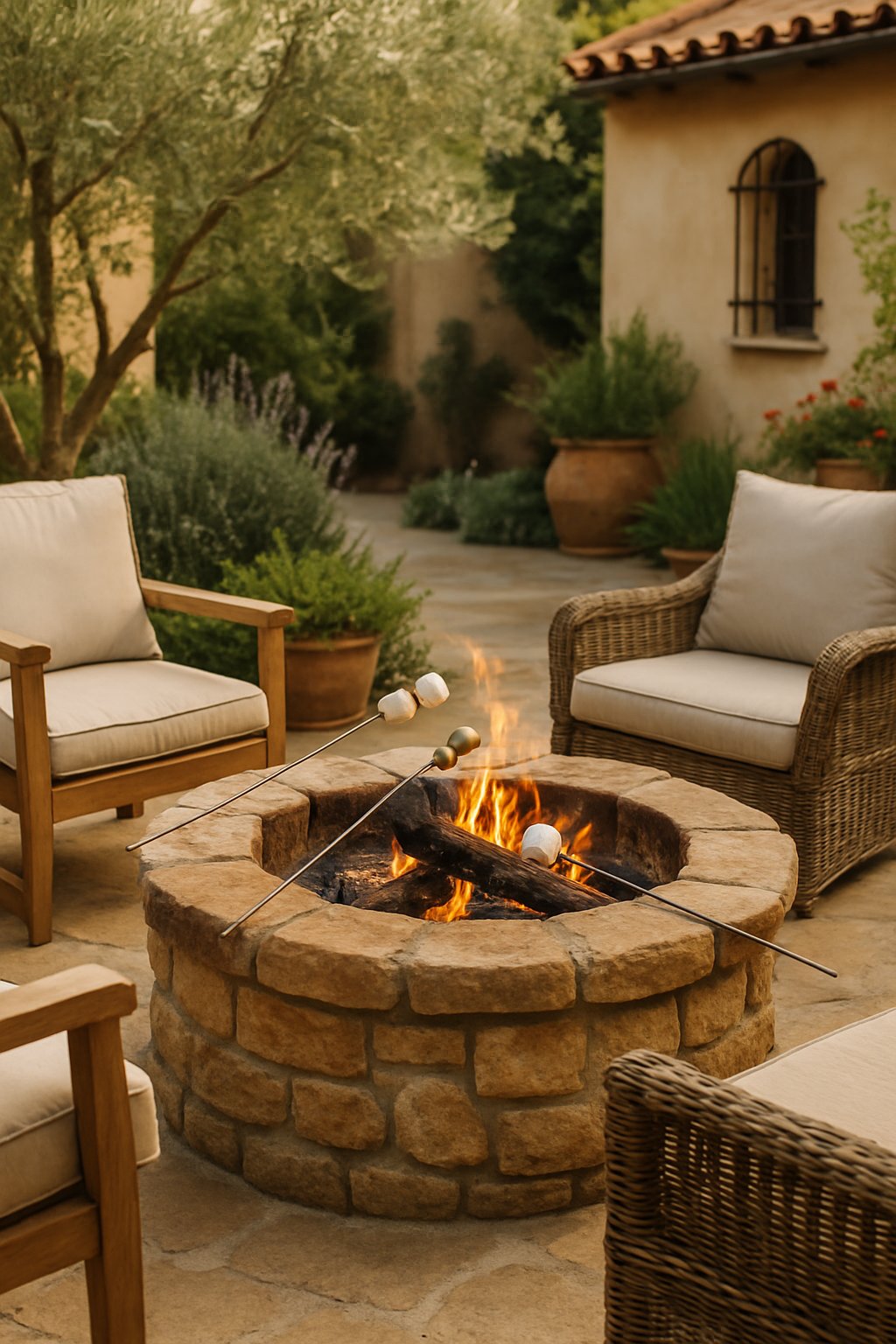 Stack natural stones to form a cozy fire area that perfectly complements the Mediterranean aesthetic. You can roast marshmallows, or even olives, over the open flames for a unique treat.