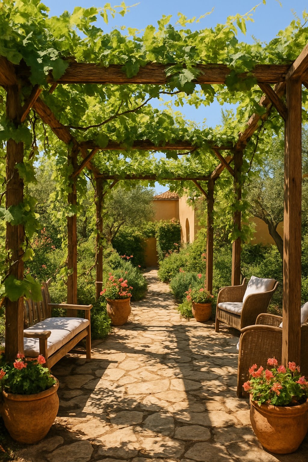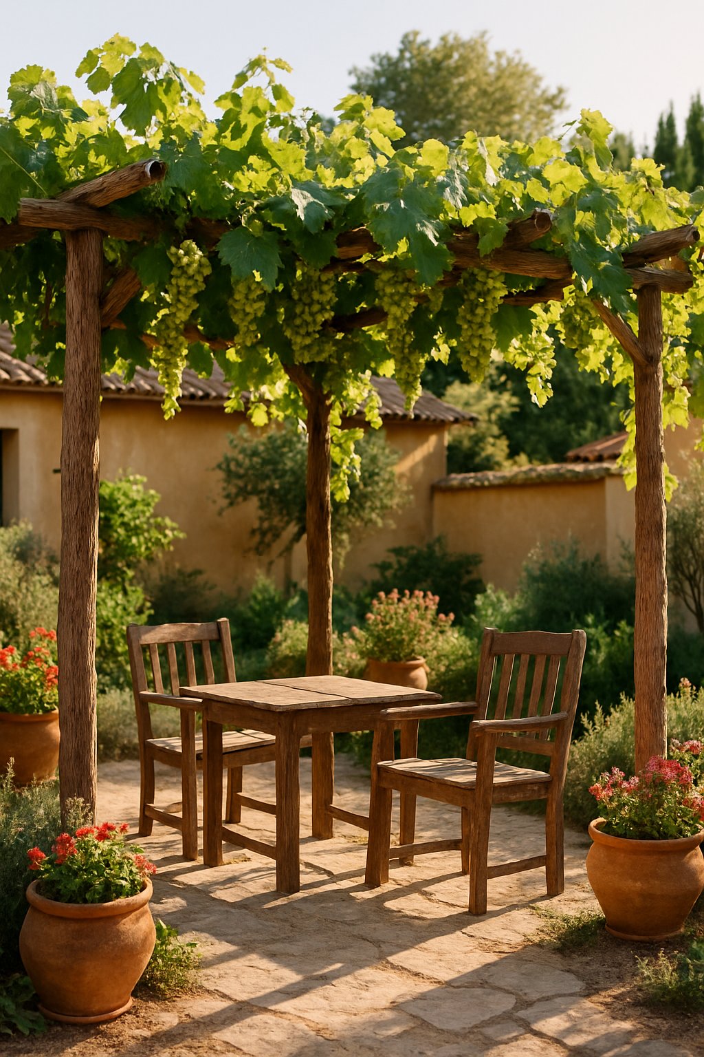 Imagine a shaded sanctuary in your backyard, with grapevines climbing over wooden beams to create a cool retreat on hot summer days. A grapevine arbor not only embodies the Mediterranean vibe but also provides fresh grapes within easy reach.