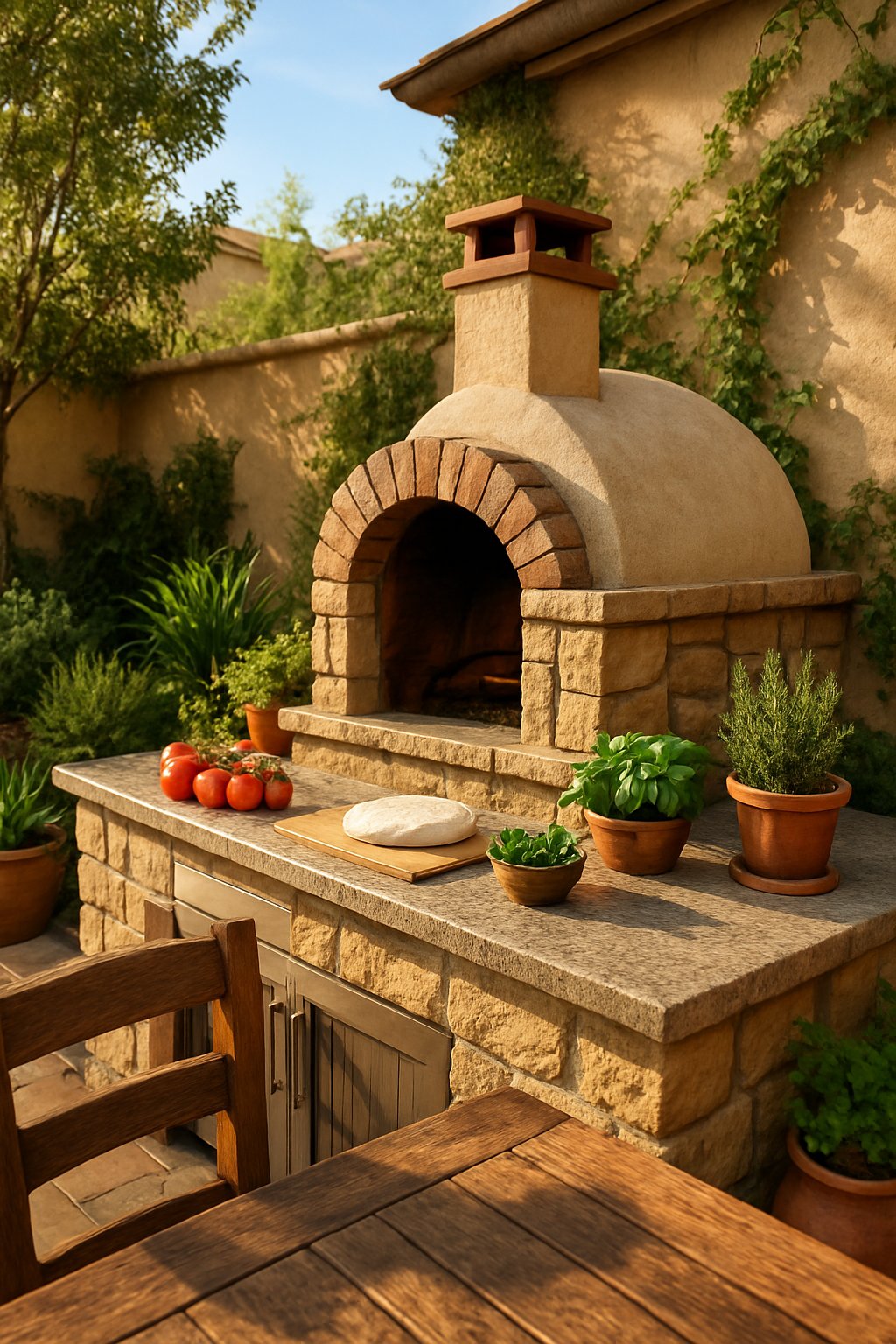 Adding a pizza oven to your Mediterranean backyard is a natural fit. It is not just for pizza, you can also grill, roast, and bake a wide variety of dishes in this versatile outdoor appliance.