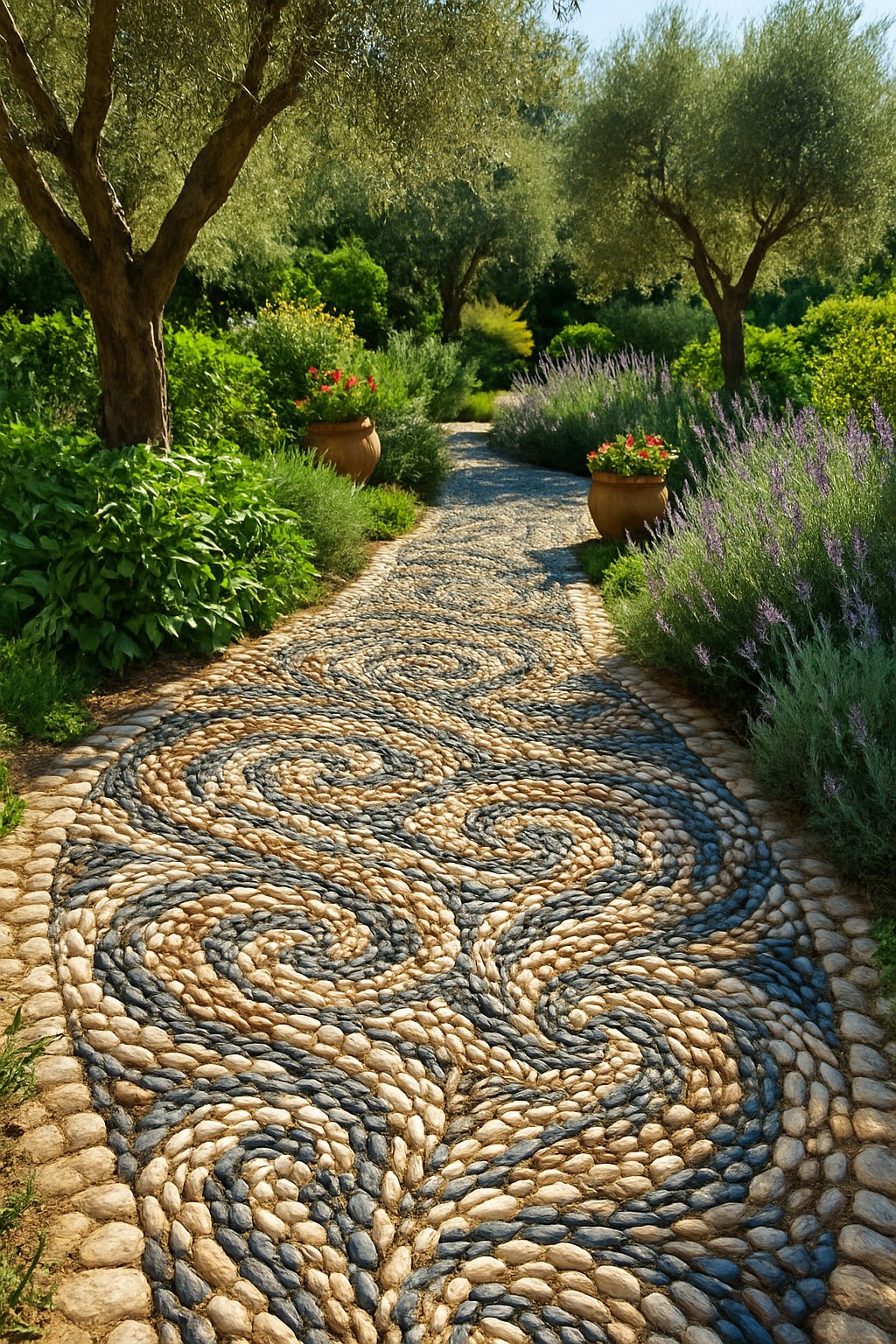 Imagine walking on a path made of tiny stones, all carefully arranged in captivating swirling patterns. The surface feels smooth underfoot, yet there is just enough texture to make each step a unique experience.
