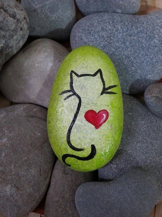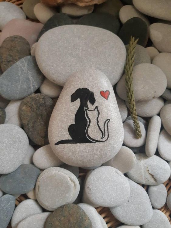 A painting doesn’t need to be complex and full of detail to be stunning. Something as straightforward as this cat outline on a vibrant green backdrop can be just as captivating. The small heart adds a truly heartwarming element to the painted rock.