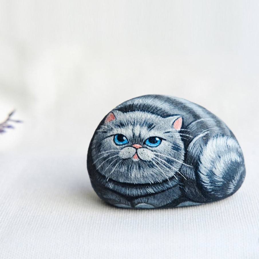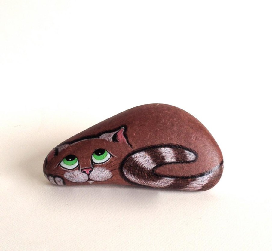 Watching a cat stretch is always a funny sight. If you happen to find an unusually shaped rock, you can transform it into a unique piece of art featuring a stretching cat. The pointed, almond-shaped eyes also contribute a distinctive flair.