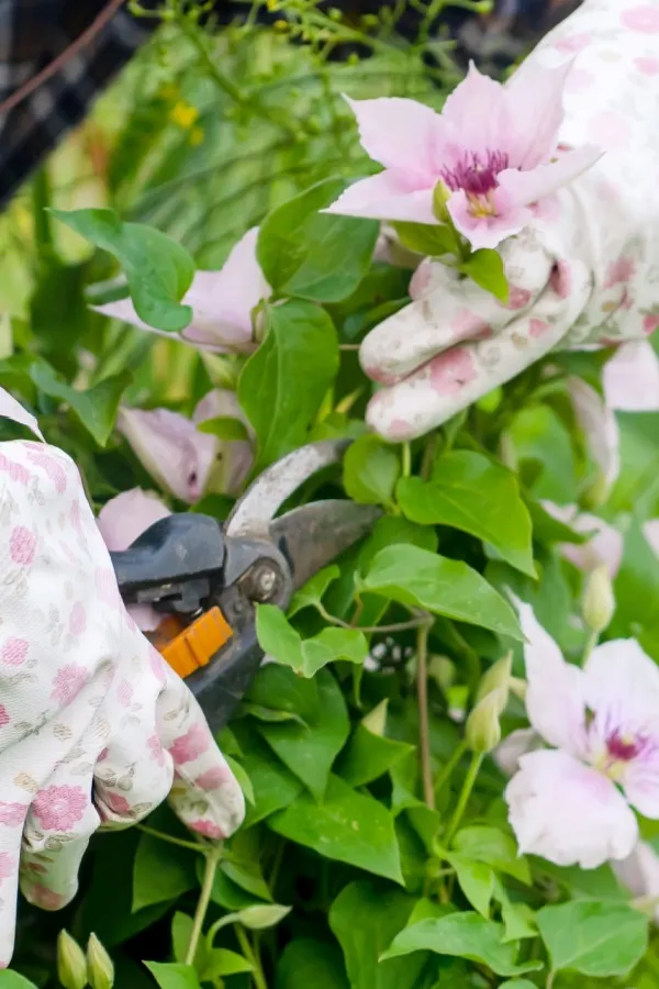 The most important task for your clematis, both while it’s blooming and afterward, is deadheading. While some plants clean up their own spent flowers, clematis needs your help to get the job done.