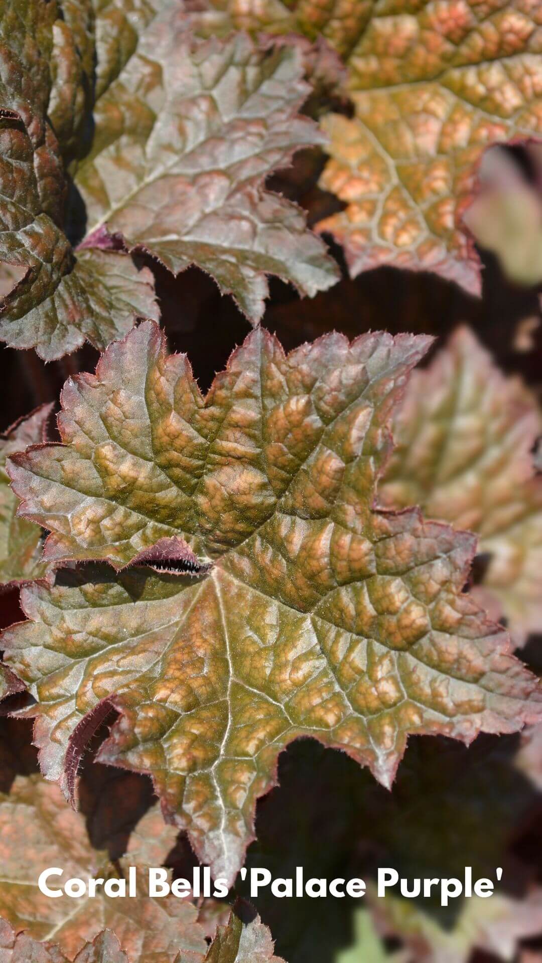 Color Pop: Mix Coral Bells ‘Palace Purple’ with Tiarella ‘Sugar and Spice’ for a striking contrast of foliage and blooms.
