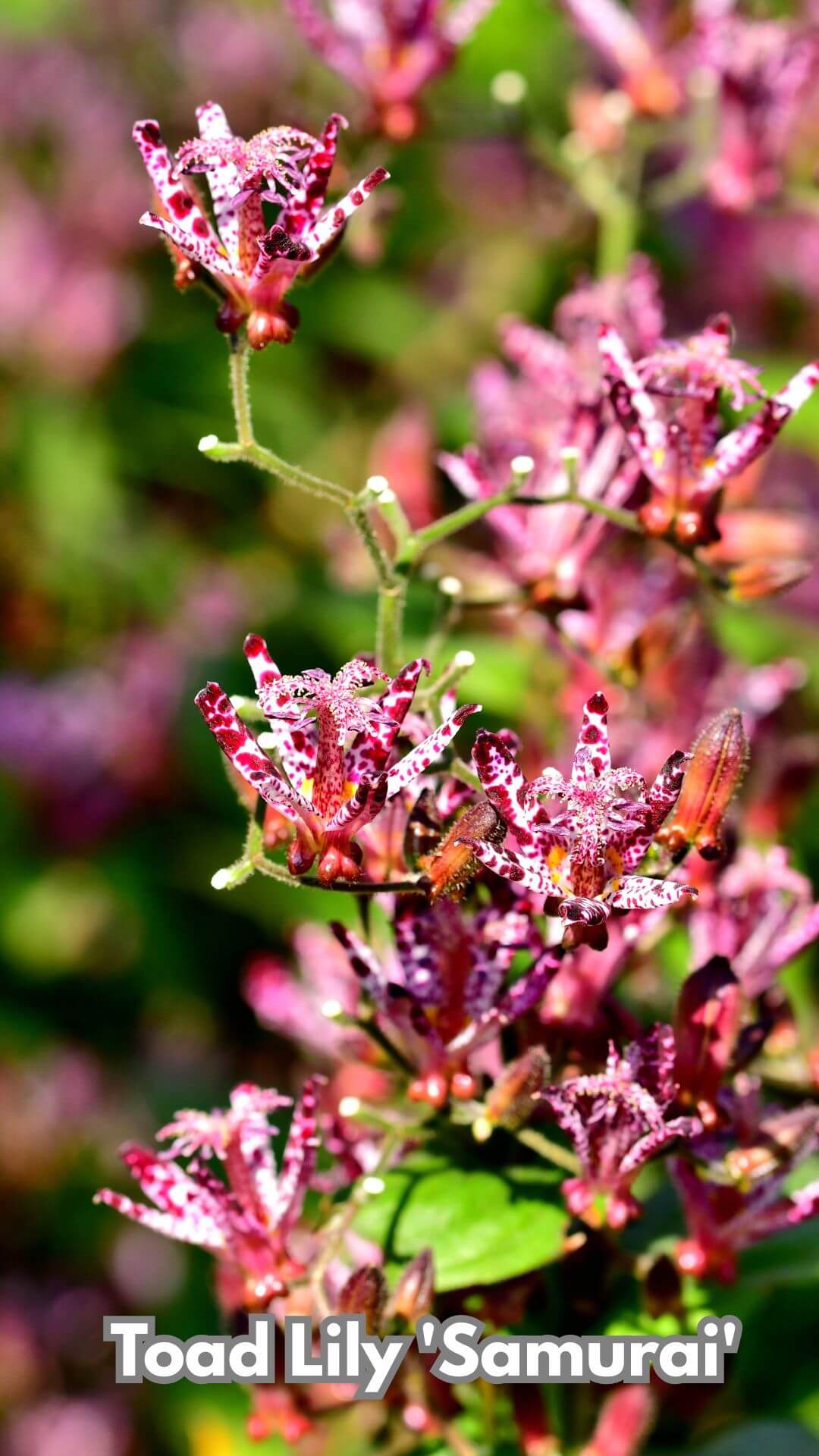 Toad Lily ‘Samurai’ is a lovely addition to any garden that needs some shade loving plants. It features delicate, orchid like flowers with white petals and purple speckles. These blossoms appear from late summer into the fall, delivering a burst of color when many other plants are done for the season.
