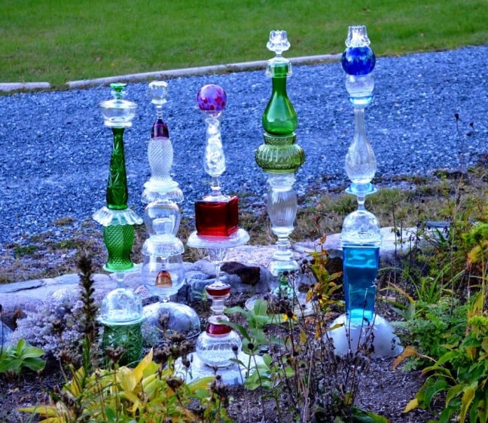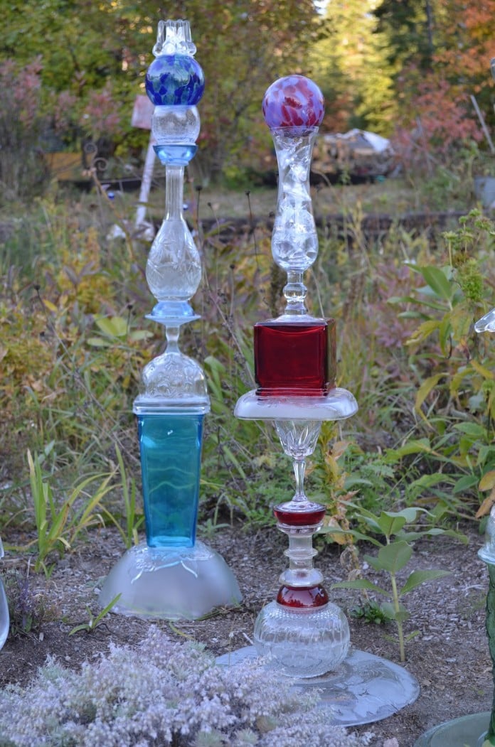 Glass is such a perfect accent for any garden, and DIY glass totems become especially captivating when you incorporate unusual and unexpected pieces.