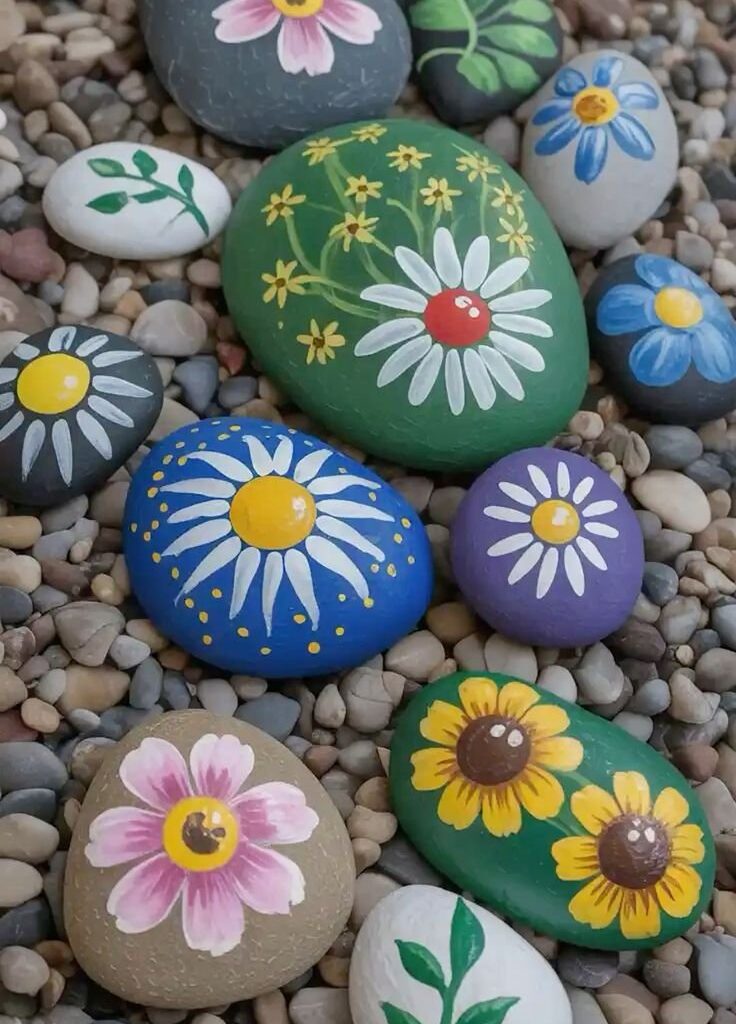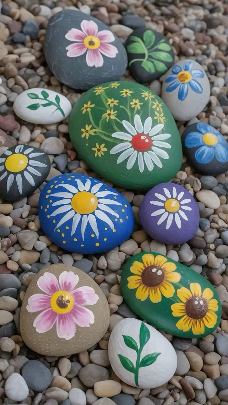 Picture a garden where every rock is blooming with floral art, a canvas of colors and shapes that seems to come alive in the sunshine. You can scatter these rocks, decorated with flowers like daisies and sunflowers, all over your garden to add a touch of magic. They not only animate your garden but also become a great talking point for visitors.