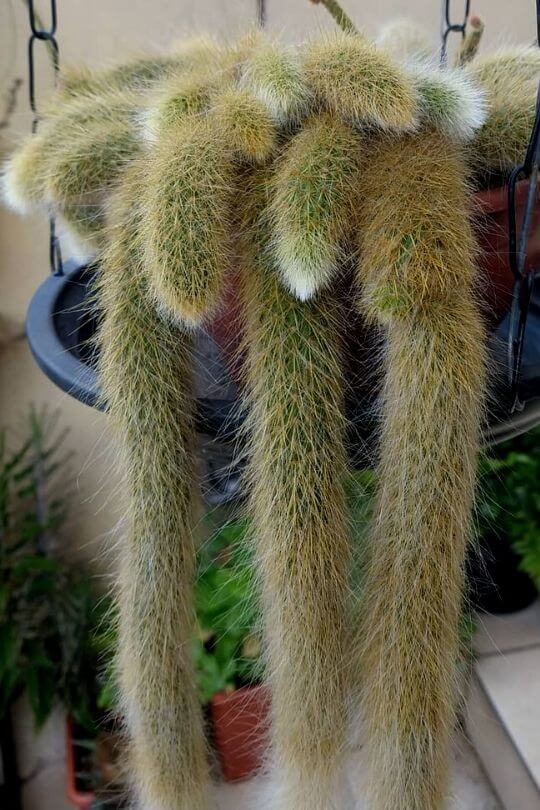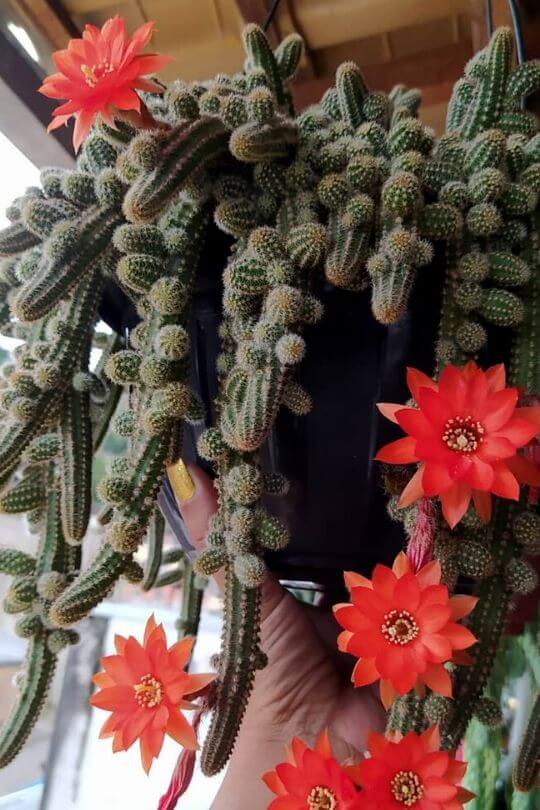 It’s commonly called the Rattail Cactus due to its long, trailing stems, which can grow up to four feet long and a half inch in diameter.