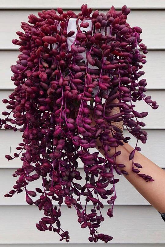 With its vibrant colors and cascading form, the Ruby Necklace plant truly resembles a brightly colored gem. Imagine the splash of color it will bring hanging in your home. It’s sure to brighten your day and the day of any visitors.